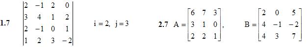 1. Для данного определителя Δ найти миноры и алгебраические дополнения элементов ai2, a3j. Вычислить определитель Δ: а) разложив его по элементам i-й строки; б) разложив его по элементам j-го столбца; в) получив предварительно нули в i-й строке.