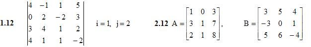1. Для данного определителя Δ найти миноры и алгебраические дополнения элементов ai2, a3j. Вычислить определитель Δ: а) разложив его по элементам i-й строки; б) разложив его по элементам j-го столбца; в) получив предварительно нули в i-й строке.