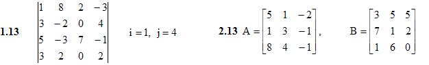 1. Для данного определителя Δ найти миноры и алгебраические дополнения элементов ai2, a3j. Вычислить определитель Δ: а) разложив его по элементам i-й строки; б) разложив его по элементам j-го столбца; в) получив предварительно нули в i-й строке.
