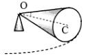 57. Круглый конус с углом полураствора α=30° и радиусом основания R = 5,0 см катится равномерно без скольжения по горизонтальной плоскости, как показано на рис.. Вершина конуса закреплена шарнирно в точке О, которая находится на одном уровне с точкой С – центром основания конуса. Скорость точки С равна υ = 10,0 см/с. Найти модули: а) угловой скорости конуса: б) углового ускорения конуса.