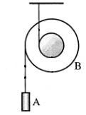 47. В системе, показанной на рис., известны масса m груза А, масса М ступенчатого блока В, момент инерции J последнего относительно его оси и радиусы ступеней блока R и 2R. Масса нитей пренебрежимо мала. Найти ускорение груза А.