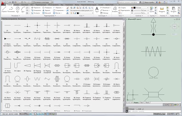 Элементы для удобства собраны в инструментальную палитру блоков AutoCAD 2010 .