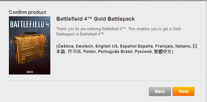 - Для активации Battlefield 4 Gold Battlepack требуется оригинальная игра Battlefield 4