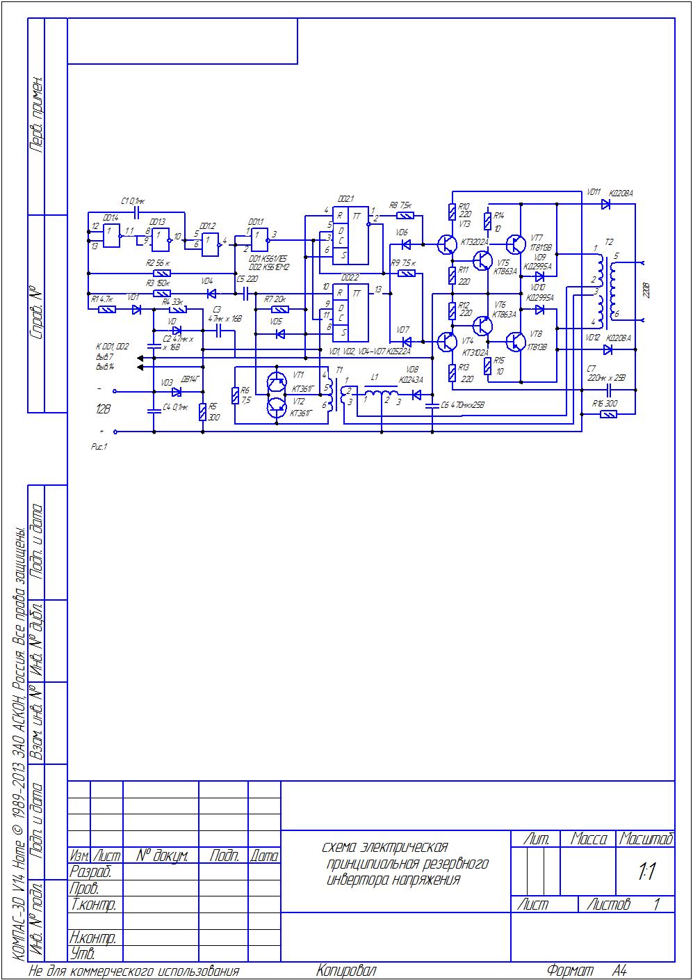 чертеж схемы электрической принципиальной резервного инвертора напряжения в компасе 14