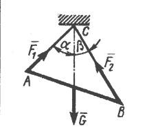 Заданы углы ?=45о и ?=30о между вертикалью и веревками AC и BC соответственно.