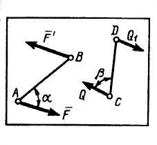 На плиту в ее плоскости действуют две пары сил. Определить сумму моментов этих пар, если сила F = 8Н, Q = 5Н, расстояния АВ = 0,25 м, CD = 0,20 м, углы ?=60°, ?=70°. (Ответ 0,792)
