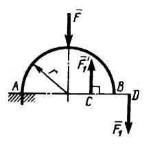 На арку АB действуют пара сил (F1, F’1 ) и сила F.