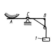 Определить горизонтальную составляющую реакции опоры С горизонтальной балки АВ, если к ней подвешен груз 1 весом 18 кH. (Ответ 0)