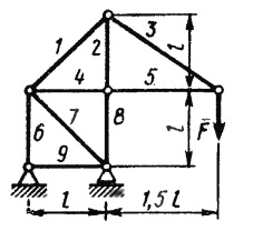 Определить усилие в стержне 1. Сила F = 380H (Ответ 806)