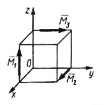 На куб действуют три пары сил с моментами М1 = М2 = М3 = 2Н·м. Определить модуль момента равнодействующей пары сил. (Ответ 3,46)