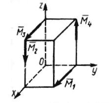 К параллелепипеду приложены четыре пары сил с моментами М1 = М2 = М3 = М4 = 100Н·м. Определить модуль момента равнодействующей пары сил. (200)