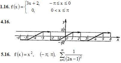 5. Воспользовавшись разложением функции f(x) в ряд Фурье в указанном интервале, найти сумму данного числового ряда.