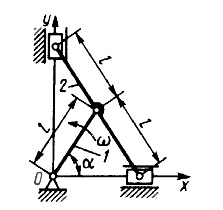 массой m = 4 кг в момент времени, когда кривошип 1 вращается с угловой скоростью ? = 10