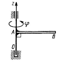 Однородный стержень, масса которого m = 3 кг и длина АВ = 1 м, вращается вокруг оси Oz по закону ? = 2t3. Определить кинетическую энергию стержня в момент времени t =lc. (Ответ 18)