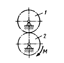Одинаковые зубчатые колеса 1 и 2 массой 2 кг каждый приводятся в движение из