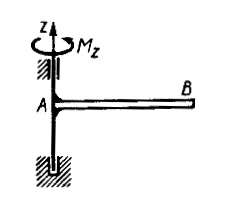 действием пары сил с моментом Мz = 4t. Определить в рад угол поворота стержня в момент