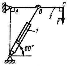 На стержень 2 механизма действует горизонтальная сила F = 3 кН. Определить в кН