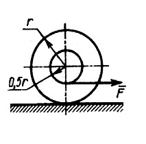 силой F = 0,5Н. Определить угловое ускорение катушки, полагая, что качение происходит без