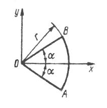 Определить координату xc центра тяжести площади кругового сектора ОАВ, если радиус r = 0,6 м, а угол а = 30°. (Ответ 0,382)