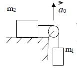 14. Через невесомый блок, укрепленный на краю стола, перекинута нерастяжимая нить, связывающая грузы с массами m1 =1 кг и m2 =2 кг. Стол движется вверх с ускорением а0 =1 м/с2. Найти ускорение груза m1 относительно стола и относительно земли. Трением пренебречь.