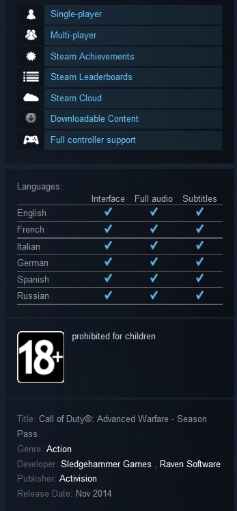 This content requires the base game Call of Duty®: Advanced Warfare on Steam in order to play.