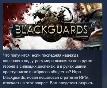 Что получится, если последняя надежда попавшего под угрозу мира окажется не в руках героев в сияющих доспехах, а в руках шайки преступников и отбросов общества? Игра Blackguards, новая пошаговая стратегия RPG, отвечает на этот вопрос. Вам предстоит открыть 180 уникальных шестиугольных карт, которые служат полем сражения. На каждой из них вас ждет мрачная и запутанная история преступления, связанная с наркотиками и убийствами.