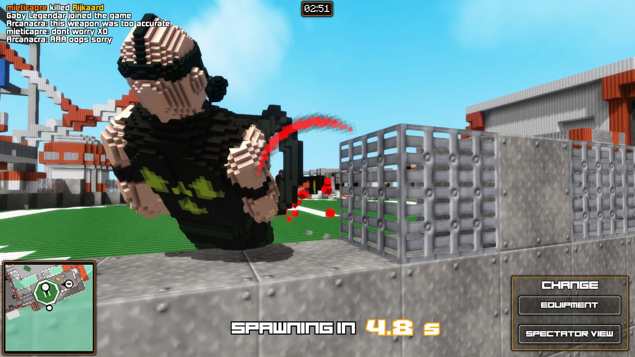 Чего нам обычно не хватает в воксельных песочницах? Правильно - экшена. Хочется бежать вперед, оставляя после себя дорожку стреляных гильз, мозги, размазанные по стенам, дымящиеся обломки и вопли лузеров в чате. С мозгами на стенах у Blockstorm пока не очень хорошо, а вот с остальным – все в полном порядке.