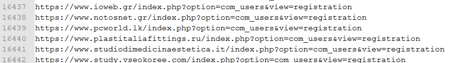 - сразу содержит ссылки для регистрации (...view=register,..view=registration, а также нестандартные);