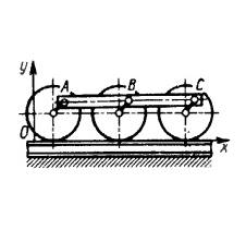 На прямолинейном участке пути центр В спарника тепловоза движется по закону хв = 15t - 0,25 cos 30 t, ув = 0,5 - 0,25 sin 30t. В момент времени (с) t = п определить скорость точки С спарника, если ВС = 1,5 м. (Ответ 16,8)
