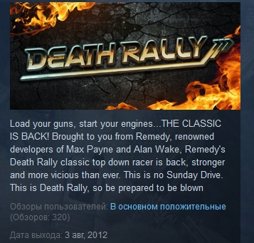 Вы можете купить игру «Death Rally» и помогите закону в нашем интернет-магазине.