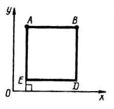 Квадратная пластина ABDE движется в плоскости Оху Определить угловое ускорение пластины в указанном положении, если длина АВ = 0,5 м, а проекции ускорений точек А и В на ось Оу соответственно равны аАу = 3 м/с2, аВу = 6 м/с2. (Ответ 4)