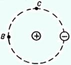Принимая протон и электрон, из которых состоит атом водорода, за точечные заряды, находящиеся на расстоянии 5*10^-9 см, найти напряженность поля в точках В и С, отстоящих на таком же расстоянии от протона, как и электрон, и расположенных, как показано на рисунке.