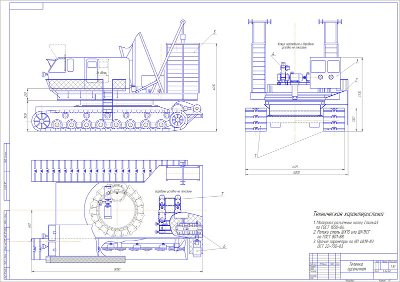 Чертеж гусеничной тележки. Тех. характеристики.