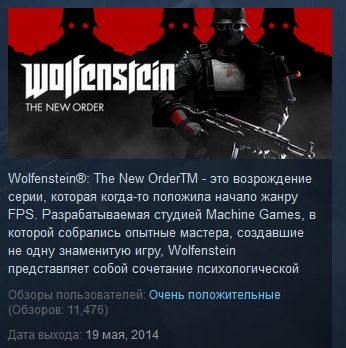 Wolfenstein®: The New Order - это возрождение серии, которая когда-то положила начало жанру FPS. Разрабатываемая студией Machine Games, в которой собрались опытные мастера, создавшие не одну знаменитую игру, Wolfenstein представляет собой сочетание психологической драмы с захватывающим сюжетом, приключениями и боевой системой от первого лица.