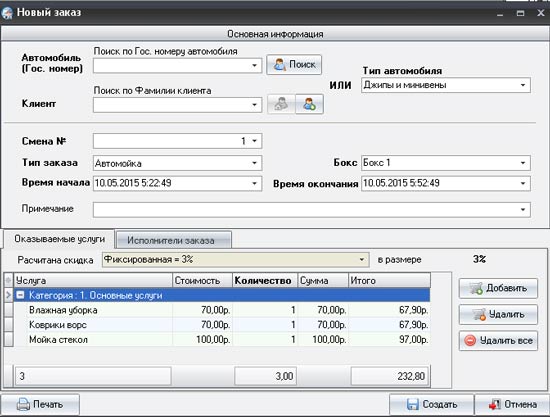 - Формирование и распечатка сопутствующих документов (акт выполненных работ, заказ - наряд)