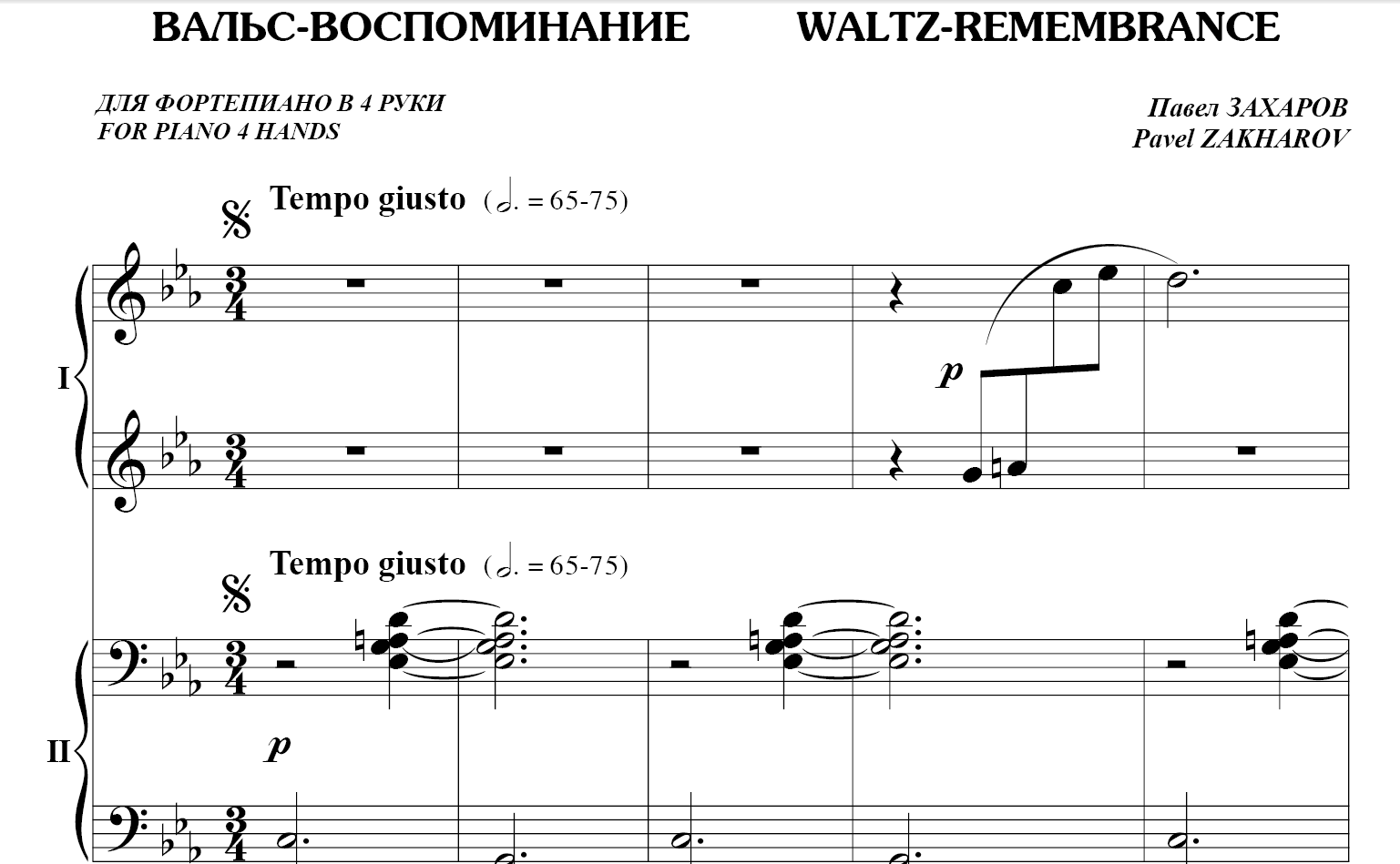 «Вальс-воспоминание» для фортепиано в 4 руки, ноты, №33 из сборника: