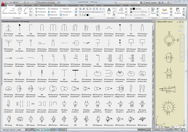 Элементы для удобства собраны в инструментальную палитру блоков AutoCAD 2010 .
