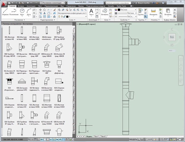 Коллекция условно-графических обозначений для экспертного проектирования модульных систем дымоходов.