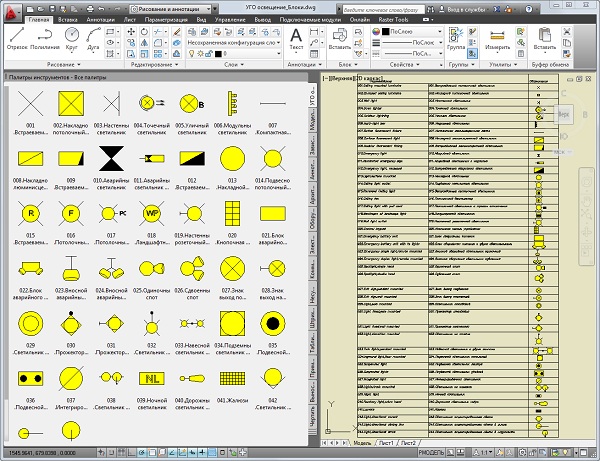 Элементы для удобства собраны в инструментальную палитру блоков AutoCAD 2010 .