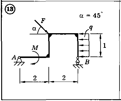 Для представленных на схемах 1-30 тел определить реакции опор. Приведенные на схемах нагрузки имеют следующие величины: вес груза G = 10 кН, сила F = 10 кН, момент пары сил М = 20 кН*м, интенсивность распределенной силы q = 5 кН/м, а также gmax = 5 кН/м. Размеры указаны в метрах. Весом тела следует пренебречь..