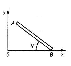 Стержень АВ длиной 2 м движется в плоскости Оху согласно уравнениям хВ = 4 cos 0,5 ?t, yB = 0. ? = 0,5 ?t. Определить в момент времени t1 = 0,5 с проекцию вектора скорости точки А на ось Ох. (Ответ -2,22)