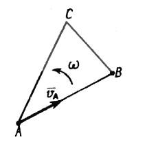 Скорость точки А плоской фигуры АВС vA = 2 м/с, угловая скорость фигуры ? = 2 рад/с, расстояние АВ = 1,5 м.