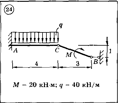 Для представленных на схемах 1-30 составных конструкций найти реакции опор. Размеры указаны в метрах. Весом элементов конструкций пренебречь.