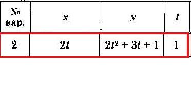 В соответствии с заданными уравнениями движения (варианты 1 - 30) определить траекторию движения точки. Для заданного момента времени t найти положение точки на траектории, ее скорость и ускорение (показать их на рисунке), а также радиус кривизны траектории в соответствующей точке. Данные, необходимые для вычисления, представлены ниже. Координаты х и у даны в метрах, время в секундах.