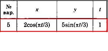 В соответствии с заданными уравнениями движения (варианты 1 - 30) определить траекторию движения точки. Для заданного момента времени t найти положение точки на траектории, ее скорость и ускорение (показать их на рисунке), а также радиус кривизны траектории в соответствующей точке. Данные, необходимые для вычисления, представлены ниже. Координаты х и у даны в метрах, время в секундах.