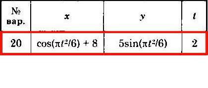 В соответствии с заданными уравнениями движения (варианты 1 - 30) определить траекторию движения точки. Для заданного момента времени t найти положение точки на траектории, ее скорость и ускорение (показать их на рисунке), а также радиус кривизны траектории в соответствующей точке. Данные, необходимые для вычисления, представлены ниже. Координаты х и у даны в метрах, время в секундах.