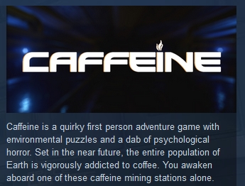 Caffeine is a quirky first person adventure game with environmental puzzles and a touch of psychological horror.