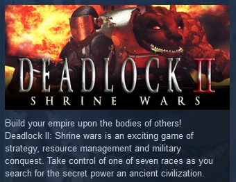 Deadlock II: Shrine wars is an exciting game of strategy, resource management and military conquest. Take control of one of seven races as you search for the secret power an ancient civilization.