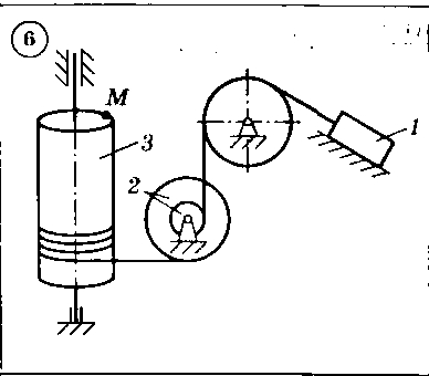 Для приведенных ниже схем механизмов 1-30 по известным характеристикам движения груза 1 — скорости V1x и ускорению а1х, или по заданному уравнению движения тела 1 — x(t), или по заданному уравнению движения вала 3 — Ф3(t) определить и показать на рисунке скорость и ускорение точки М, а также скорость и ускорение груза 1 в данный момент времени. Исходные данные, включая радиусы шестерен, шкивов и барабанов, приведены в таблице.