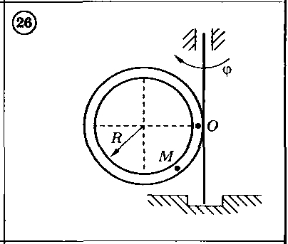 В приведенных ниже схемах 1-30 рассматривается движение точки М в желобе вращающегося тела. По заданным в таблице уравнениям относительного движения OM(t), переносного движения Фи(t) и геометрическим размерам определить абсолютную скорость и абсолютное ускорение точки в указанный момент времени.